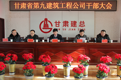 1月10日,甘肅建投總經(jīng)理蘇海明、總工程師馮力強、組織部部長李維政一行到甘肅建投九建召開干部大會,對九建新一屆領(lǐng)導(dǎo)班子提出要求。
